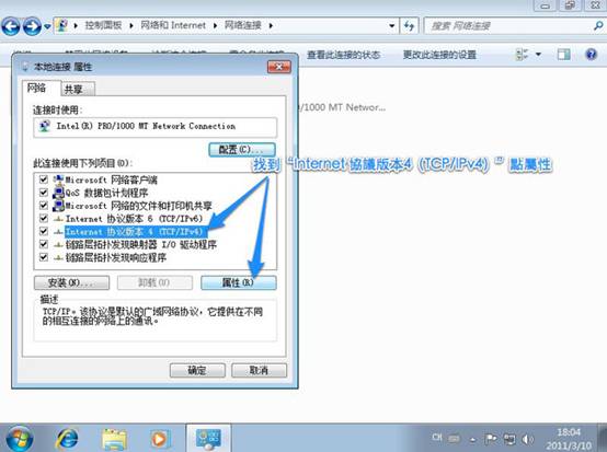 2、    Win7为例 ,首先在桌面右键点击“网络”选择“属性”,再打开“更改适配器设置”到网络连接位置