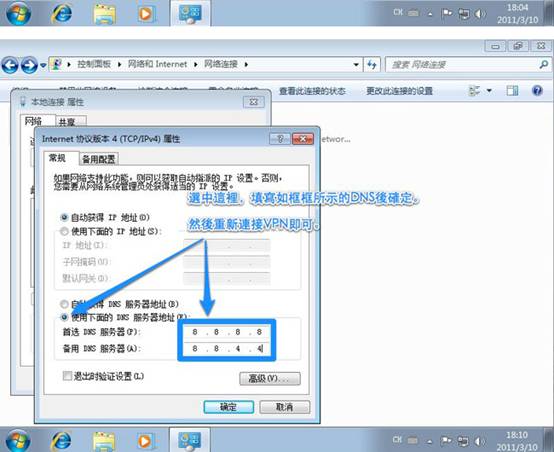 当然,你还可以手动修改。如果要还原的话,只需点击自动获得 dns服务器地址,确定就行。