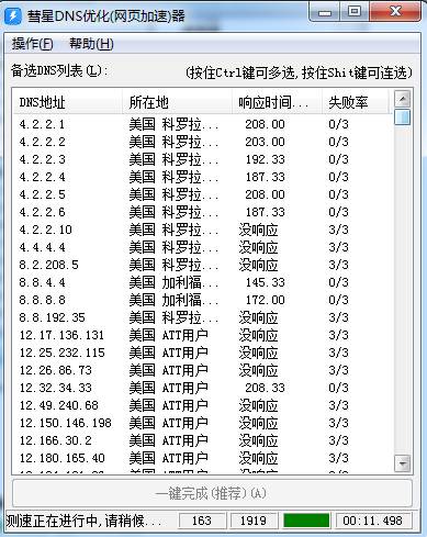 一键完成按钮会自动将速度最快的 dns设置为您电脑的dns